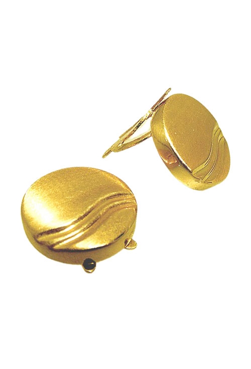 Cubrebotones de oro amarillo 18 ktes. diseño de forma circular con acabado matizado adornado por gallones curvos, los cubrebotones sirven para adornar cualquier camisa de manga larga.