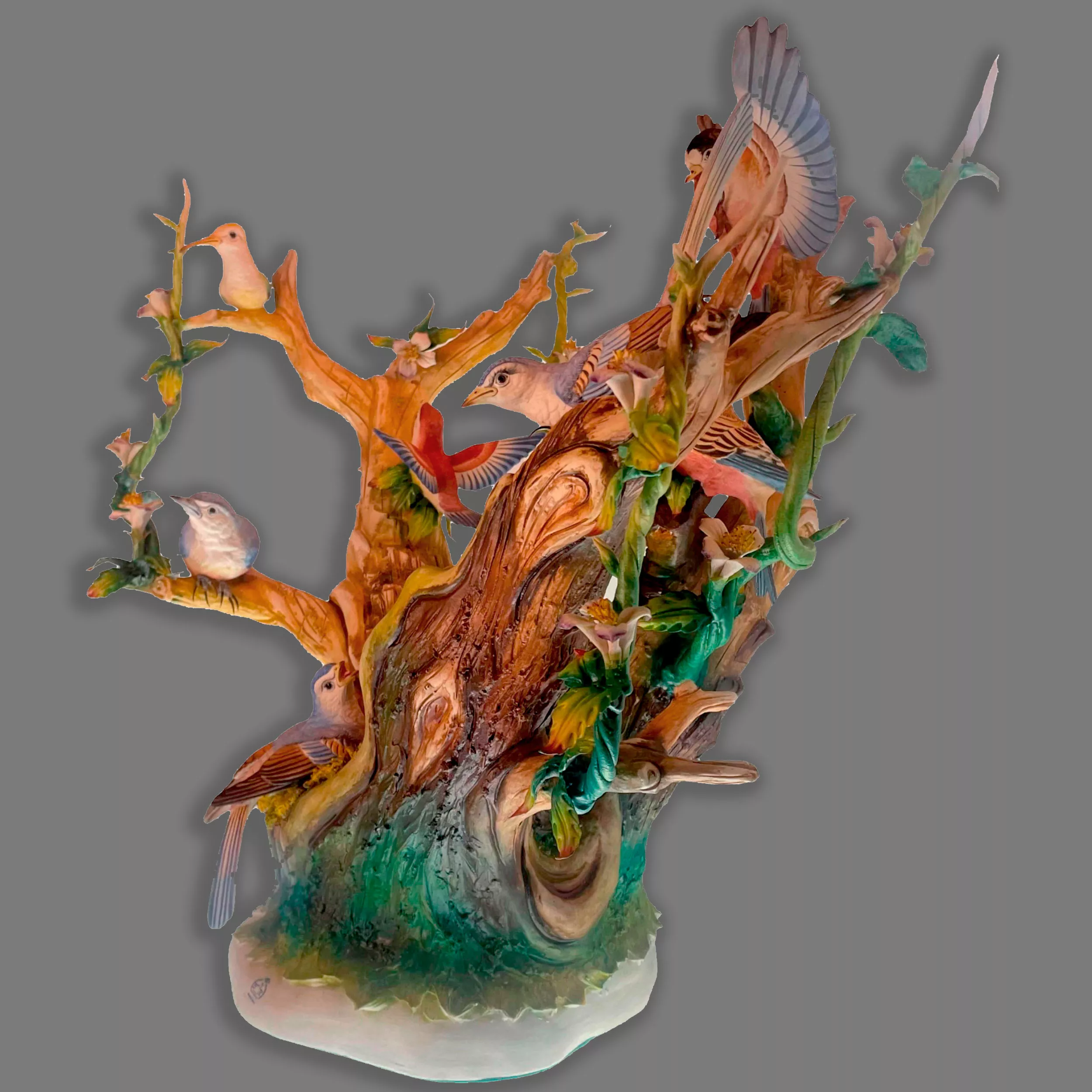 Cada rama y cada hoja de este árbol genealógico están imbuidas de historia y significado. Creado en una época en la que el trabajo artesanal era valorado y respetado, esta figura de porcelana es un recordatorio de los tiempos pasados, cuando la atención al detalle y la excelencia en la artesanía eran la norma. Su condición de pieza irrepetible la convierte en un tesoro del pasado, imposible de reproducir con la misma autenticidad y maestría en la actualidad.