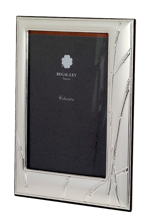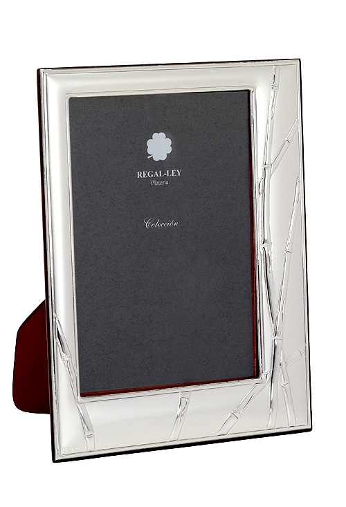 Marco portafotos en plata decorado con tallos de bambú 088_001480-2