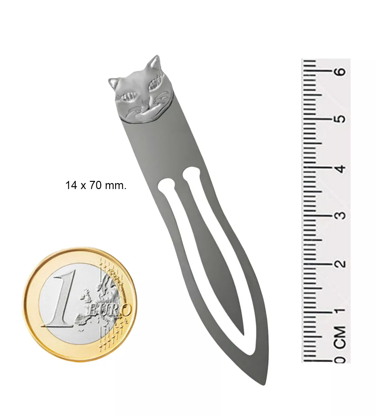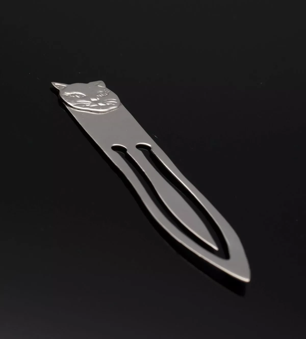 Punto de libro de plata exclusivo para amantes de la lectura y los gatos. Fabricado en plata de ley 925, su diseño con la cabeza de un gato combina elegancia y resistencia. Personalizable con grabado, es un regalo único e irrepetible. Su stock es limitado y está disponible para entrega inmediata. No pierdas la oportunidad de tener este accesorio especial. ¡Compra ahora en Rubí Joyeros!