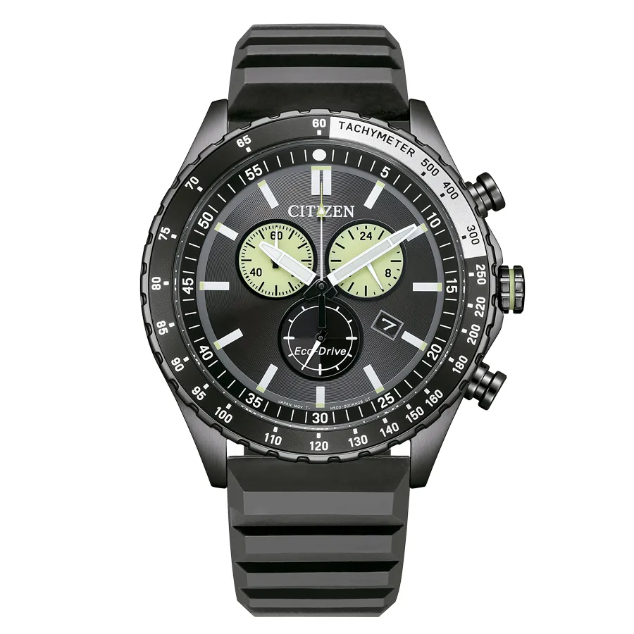 El diseño del Reloj Citizen Chrono Of collection transmite dinamismo, precisión y modernidad. El color negro de la esfera simboliza fuerza, elegancia y control, mientras que los detalles técnicos como el taquímetro refuerzan su espíritu deportivo y funcional.