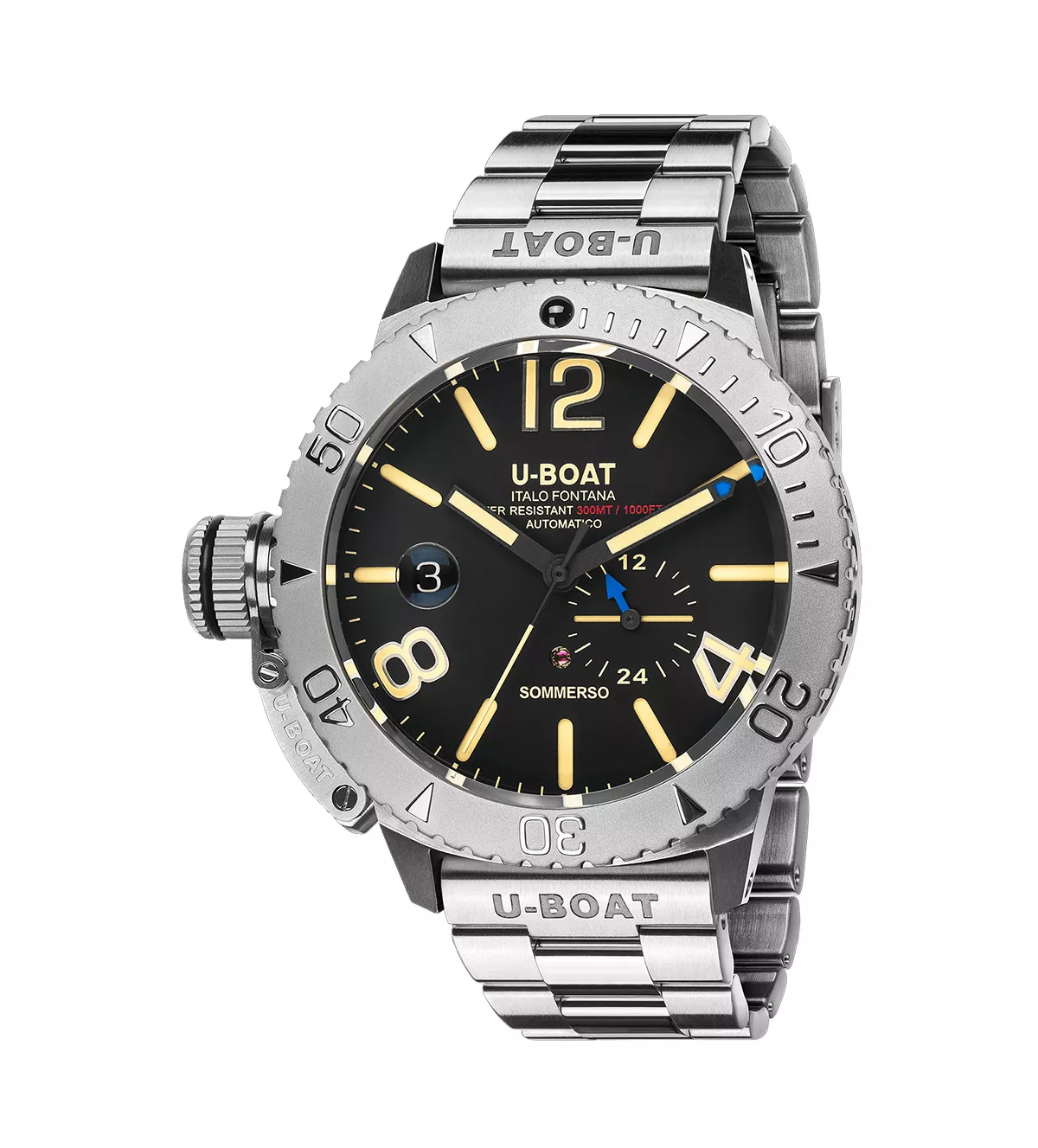 Reloj U-Boat Capsule 46mm acero 9007-A-MT el Classic Sommerso, creado por Italo Fontana, es un reloj de buceo de diseño atrevido y funcional. Con un bisel giratorio y contador adicional de 24 horas, resiste al agua hasta 30 ATM.