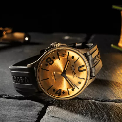 Reloj U-Boat Darkmoon Black Vintage 9547 Look vintage y diseño italiano muy cuidado en el que se fusiona el color de la esfera con el tratamiento de bronce de la caja.