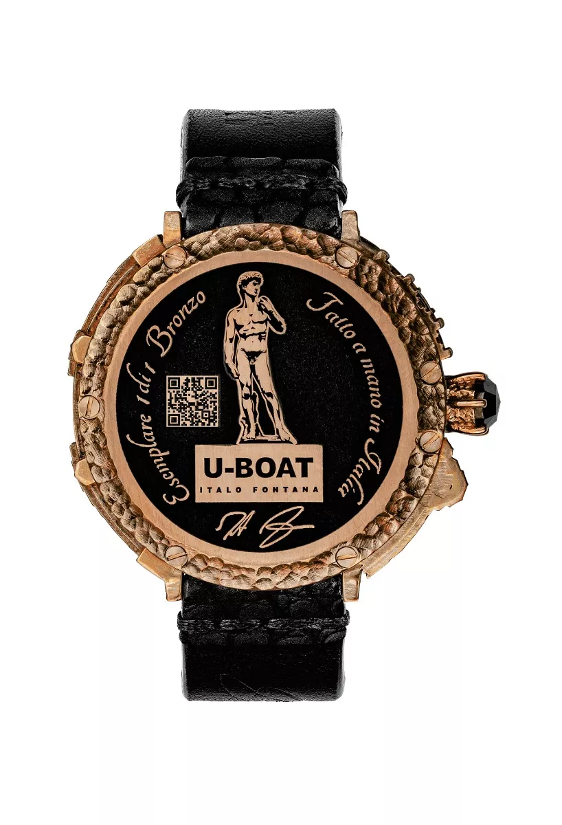 La tapa inferior del reloj está adornada con el grabado láser del David de Miguel Ángel, un detalle que refleja la artesanía y la atención al detalle. El cristal de zafiro brinda una durabilidad incomparable, mientras que la correa de piel de cocodrilo negra con inserción de pez raya ofrece comodidad y estilo.