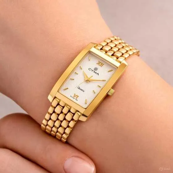 Cyma: Un Clásico reloj de Oro para la Mujer Moderna. Sofisticación suiza y diseño atemporal se unen en este exquisito reloj de oro. Su estética refinada, con brazalete tipo pantera y esfera clásica, lo convierte en la joya perfecta para cada ocasión. Una pieza que trasciende las modas y se convierte en un legado.