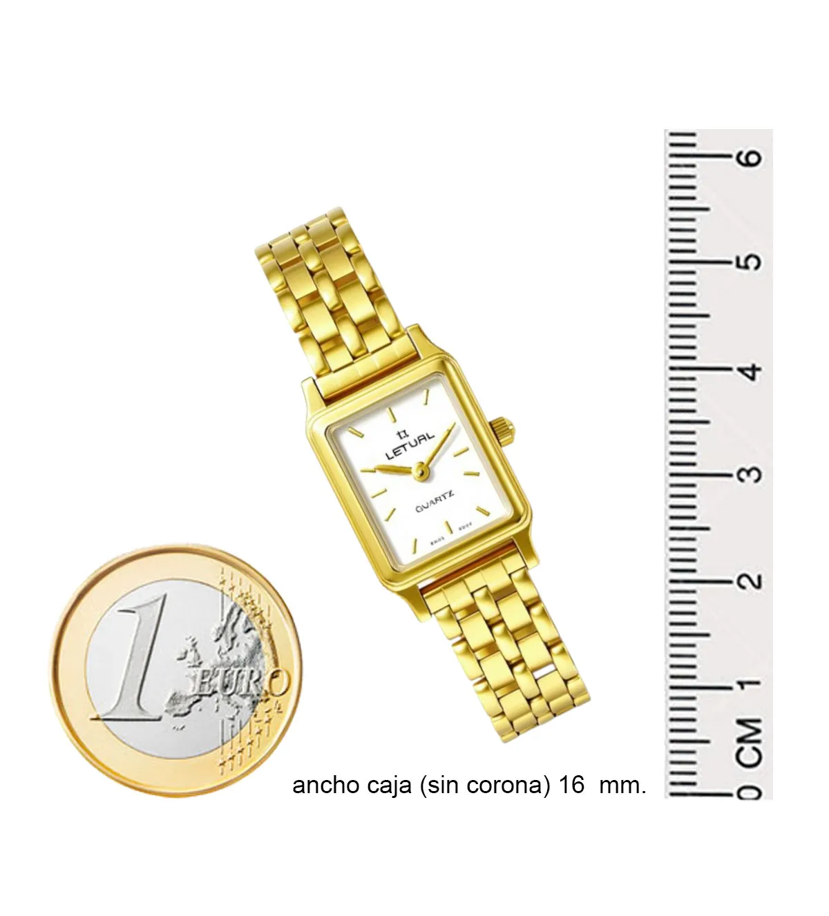 | Medidas | Reloj Letual con caja de 16×20 mm. de diámetro. |