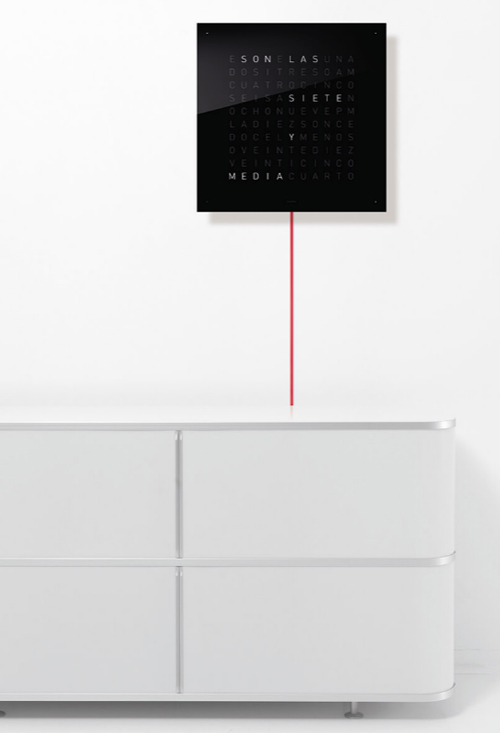 Qlocktwo Stainless Steel Black Pepper reloj de pared letras de 45×45 Cms